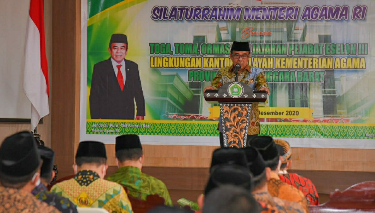 MATARAM, – Menteri Agama (Menag) RI, Jenderal TNI (Purn.) Fachrul Razi., didampingi Gubernur NTB Dr. H. Zulkieflimansyah melakukan kunjungan ke Kantor Wilayah (Kanwil) Kementerian Agama Provinsi. Pada kegiatan ini, Menag menggelar silaturahmi dengan Tokoh Agama, Tokoh Adat, Tokoh Masyarakat, Ormas dan juga ASN lingkup Kemenag.