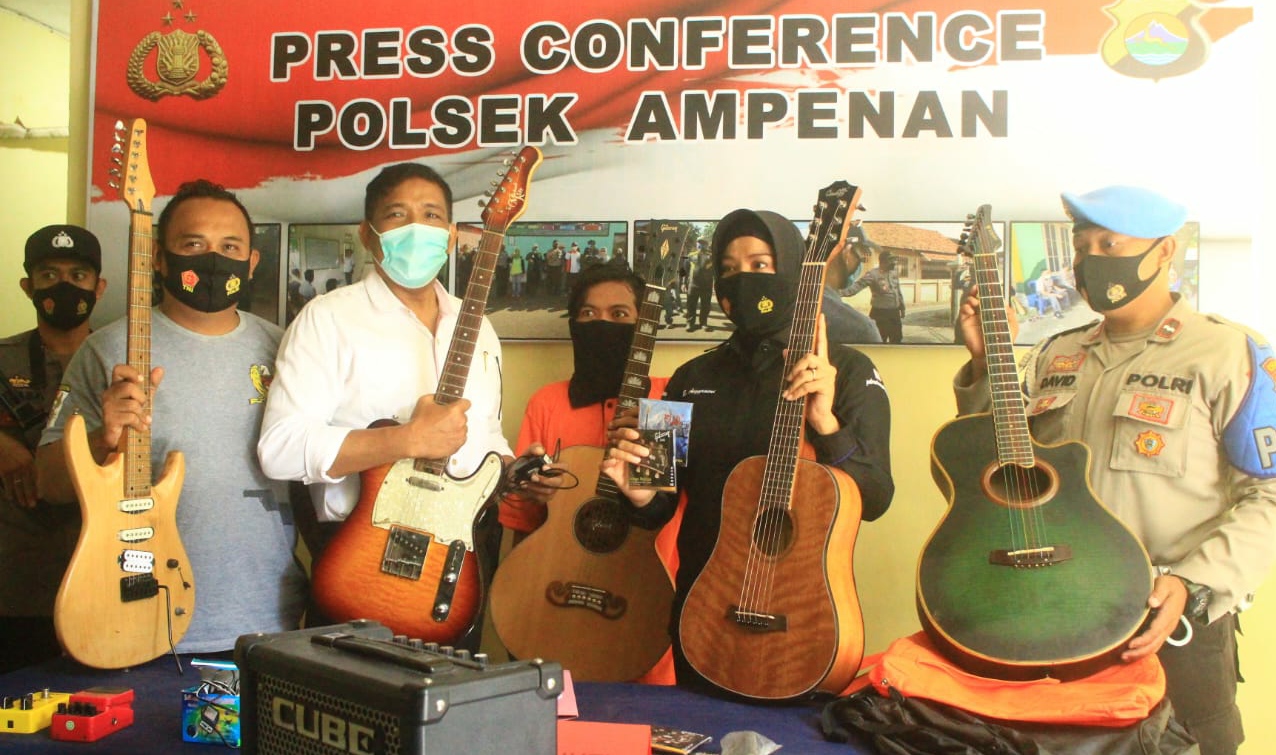 Dihadapan petugas, pelaku mengakui semua perbuatannya, peralatan musik yang dicurian tersebut sebagian ia jual serta gadai dan sebagian lainnya dititip dirumaj temannya.