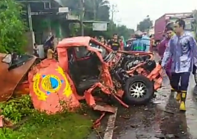 Mobil operasional TRC berjenis Panther yang mengangkut 7 personel TRC tersebut bertabrakan dengan truck di jalan jurusan Pringgabaya-Sambelia, tepatnya di Desa Bagik Papan. (Pr)