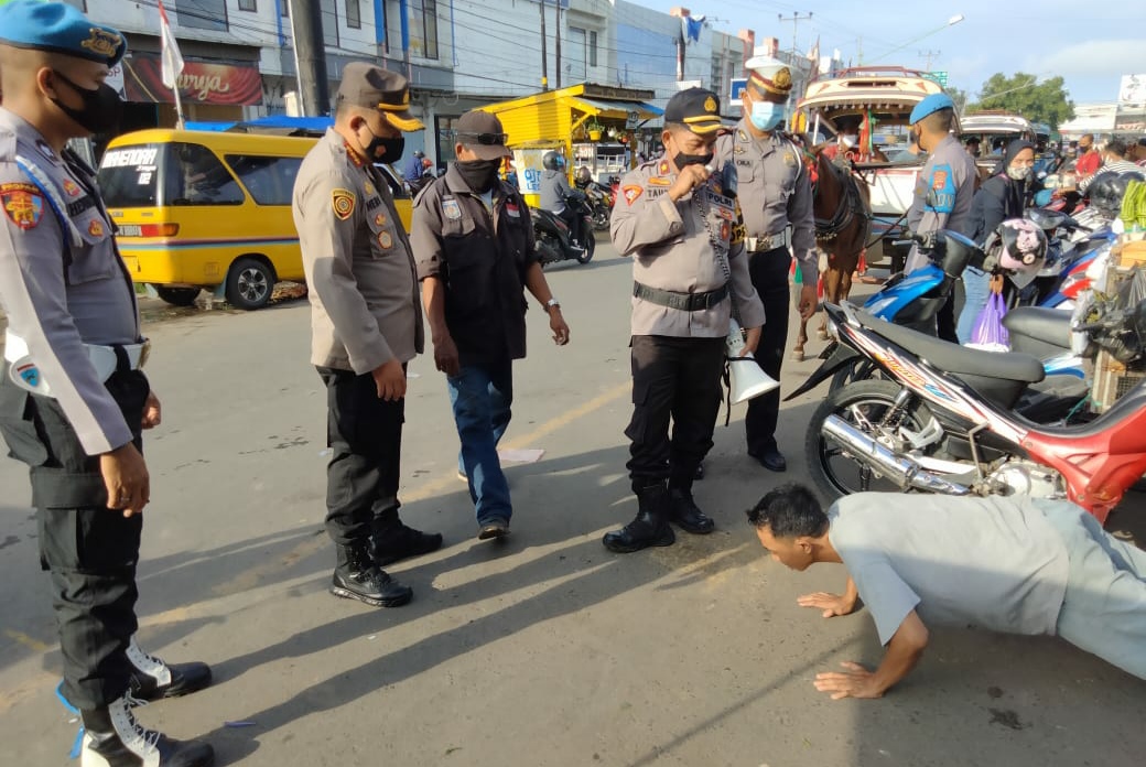 Selain itu, pihaknya juga mendapati Juru parkir yang tidak menggunakan masker. Kepada mereka tidak hanya diberi teguran, tetapi juga diberi sanksi berupa Push up.