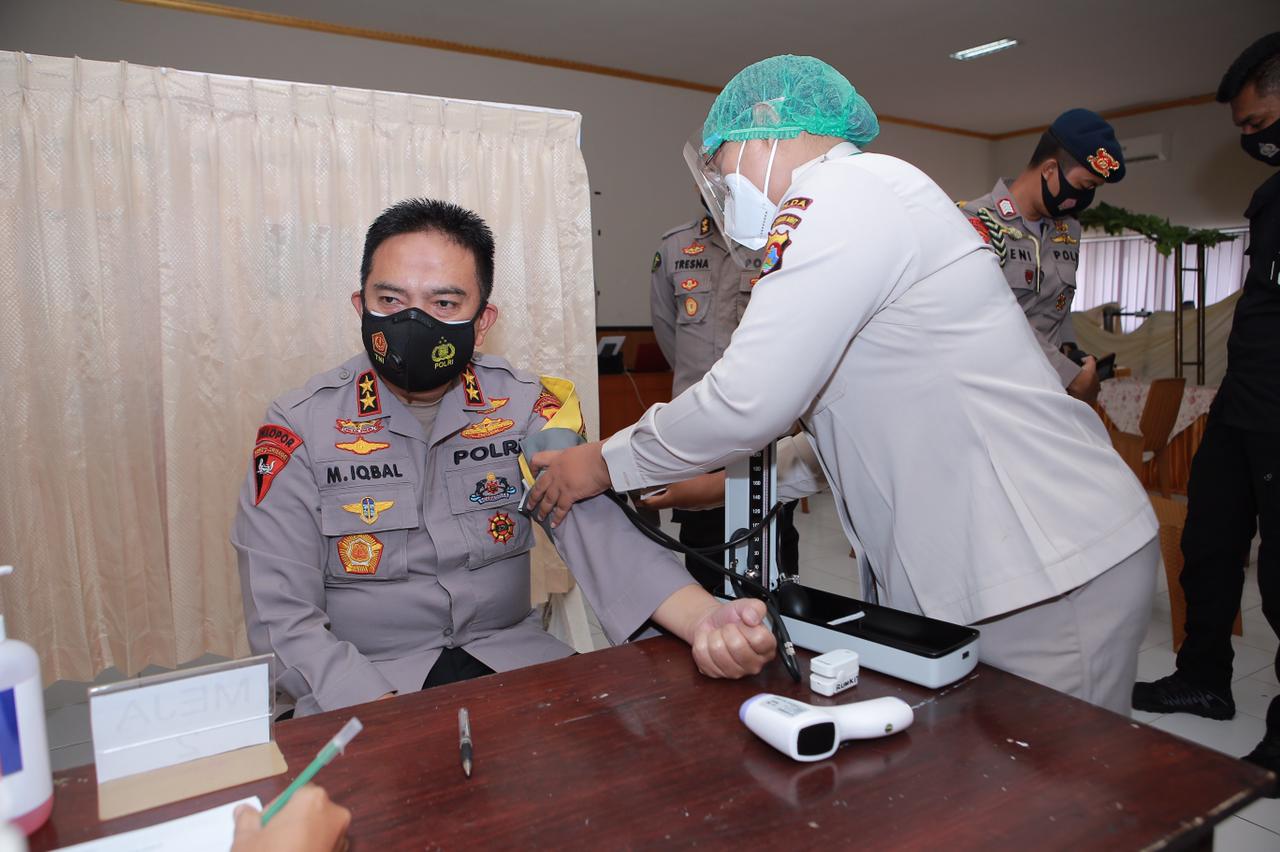 Mataram, – Kapolda NTB Irjen Pol Mohammad Iqbal S.I.K, M.H., kembali menjalani vaksin Covid-19 untuk yang kedua kalinya, Kamis (28/1/2021).