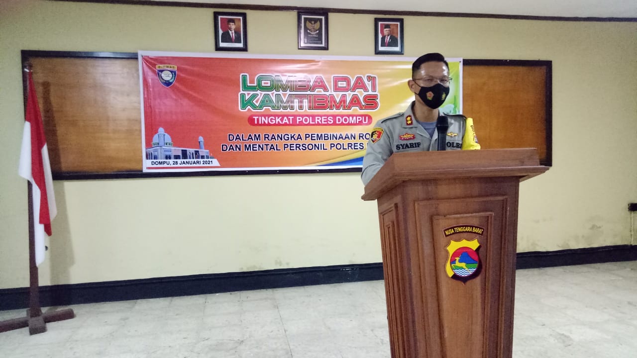DOMPU, – Jelang Lomba Da’i Kamtibmas tingkat Polda NTB, Kepolisian Resor Dompu melalui Satuan Pembinaan Masyarakat (Satbinmas) menggelar kegiatan penjaringan anggotanya melalui Lomba Da’i Kamtibmas tingkat Polres, Kamis, 28/1/2021).
