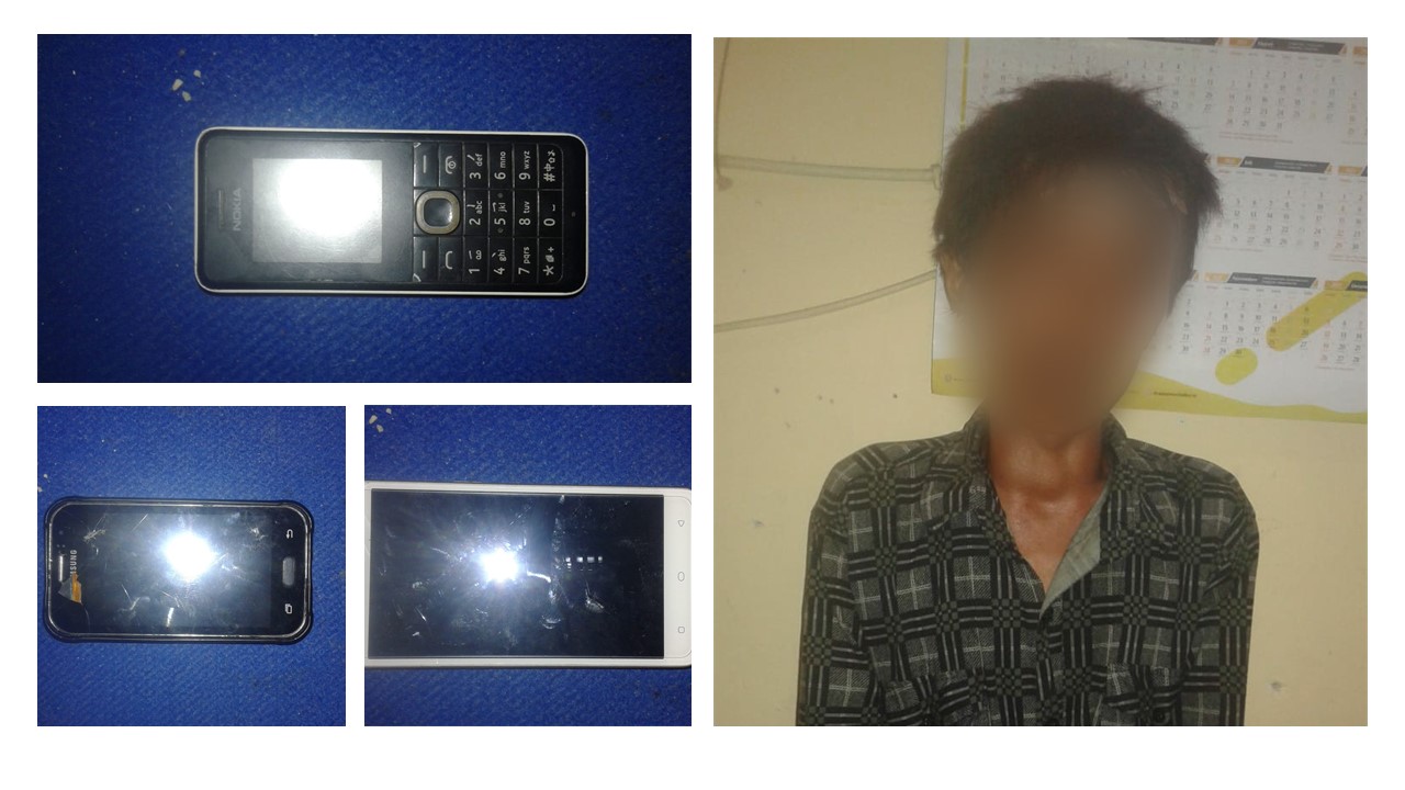Pelaku UA berhasil ditangkap di tempat tongkrongannya di Taman Tonjeng Beru berikut barang bukti berupa 3 unit Handpone Yang masih dalam penguasaannya.