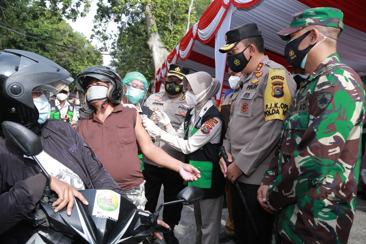 “Kami TNI-Polri bersama Pemerintah Daerah dalam hal ini Dinas Kesehatan ingin melakukan upaya proaktif dengan prinsip untuk mempercepat program Vaksinasi Nasional khususnya di Provinsi NTB,” tegas Iqbal saat meninjau lokasi Drive Thru Vaksinasi Covid-19.