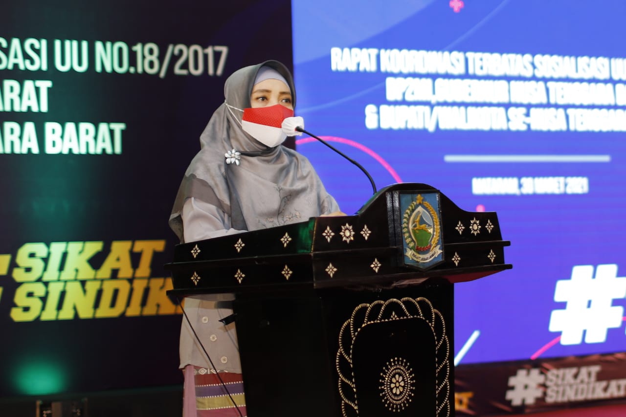 “Melalui Revitalisasi Posyandu atau Posyandu Keluarga yang ada disetiap dusun di NTB, NTB Harus Zero Kasus Unprosedural Buruh Migran,” tegas Wagub yang akrab disapa Ummi Rohmi saat memberikan sambutan dalam sosialisasi Undang-Undang No. 18 Tahun 2017 tentang Perlindungan Pekerja Migran Indonesia (PMI) di Gedung Graha Bhakti Praja, Selasa (30/3/2021).