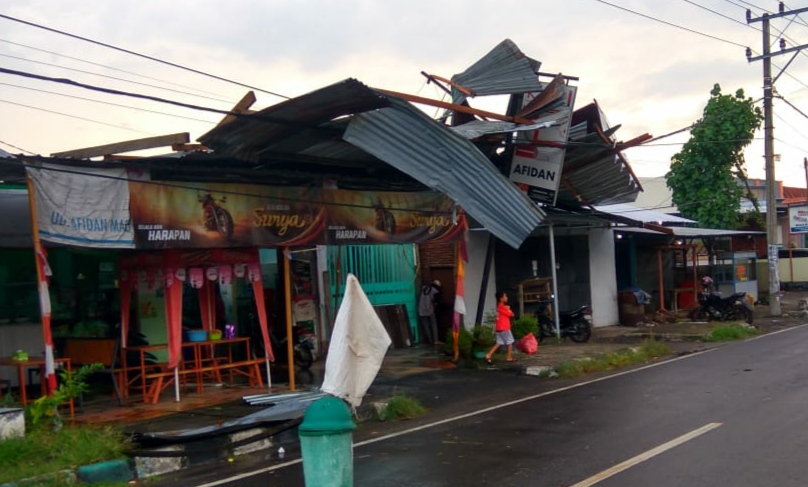 2. 1 buah warung berlokasi di depan SMPN 1 Labuhan Badas terhempas bagian atap milik Zulkarnaen.