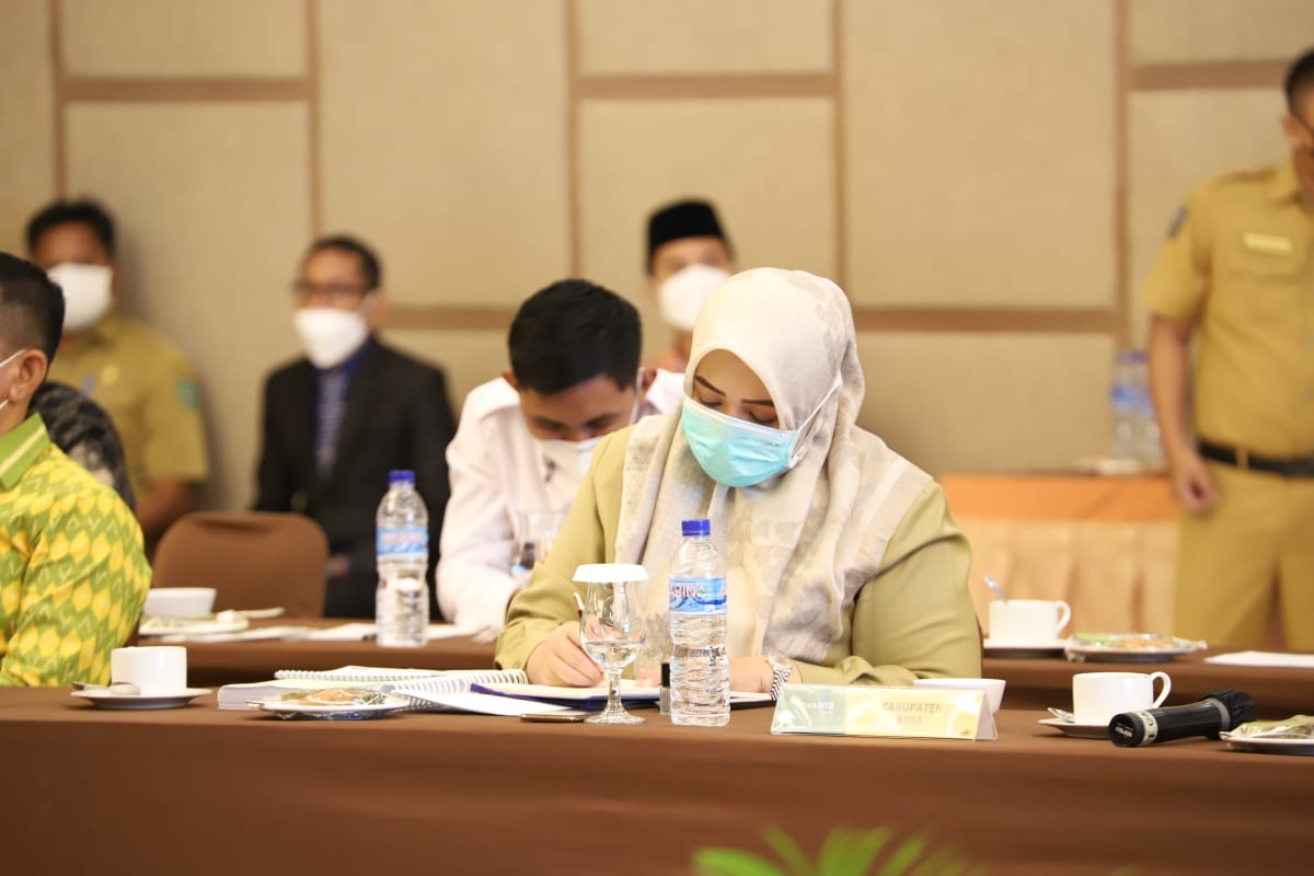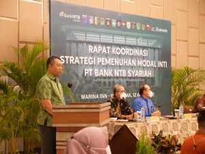 Bima,- Bupati Bima Hj Indah Dhamayanti Putri SE., menghadiri Rapat Koordinasi Strategi Pemenuhan Modal Inti dan Rapat Umum Pemegang Saham (RUPS) tahun 2021, PT. Bank NTB Syariah, bersama sebelas Kepala Daerah, Kabupaten dan Kota se Propinsi NTB, di Ballroom Marina Inn, Senin 12 April 2021.