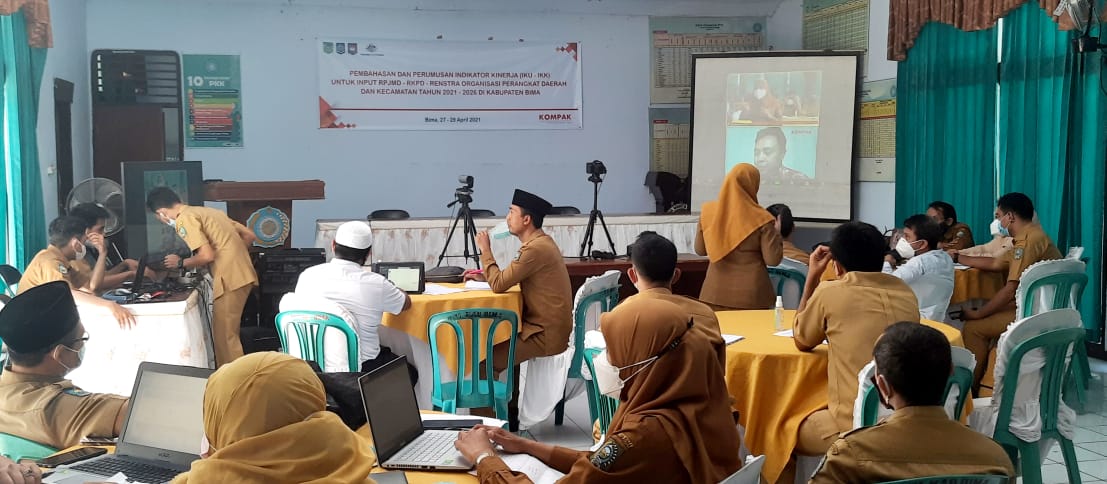 Demikian salah satu point pengantar Manager Provinsi KOMPAK NTB Lalu Anja Kusuma Selasa (27/4/2021) saat memberikan sambutan secara virtual Pembahasan dan Perumusan Indikator Kinerja Utama (IKU) dan Indikator Kinerja Kunci (IKK) untuk input RPJMD-Rencana Kerja Pemerintah Daerah (RKPD) dan  Renstra Organisasi Perangkat Daerah dan Kecamatan tahun 2021 – 2026 Kabupaten Bima di Gedung PKK Kabupaten Bima.
