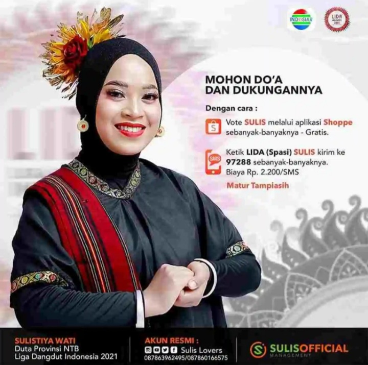 Untuk mendukung Sulis Duta NTB ini, caranya, ketik LIDA (Spasi) SULIS kirim ke 97288. Dan vote SULIS melalui aplikasi Shopee sebanyak-banyaknya, gratis. (tim)