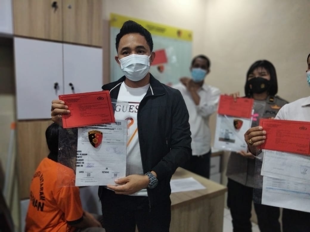 Korban SM telah melaporkan perbuatan tersangka. SM sendiri mengalami kerugian sebesar Rp. 8.400.000,- yang digunakan untuk biaya mengurus PCR, 16 rekannya. Uang tersebut ditransfer langsung ke rekening tersangka.