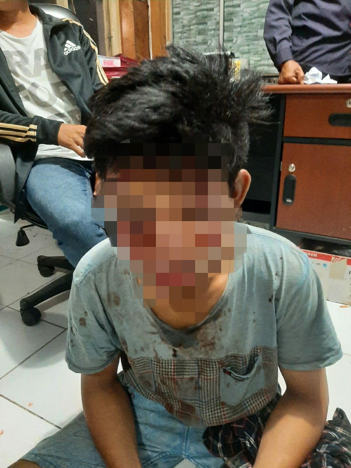 “Saat itu sama-sama terjatuh, pelaku kemudian menyerang korban dan saksi menggunakan parang. Korban dibantu saksi sempat berusaha melawan, sehingga korban mengalami luka tebas di pangkal lengan sebelah kiri, luka sayat di dada dan dagu,” terangnya.