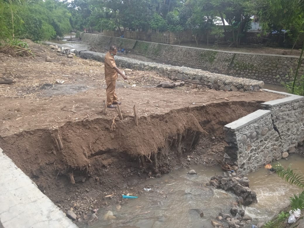 Bima, – Bangunan talud di So Lapisupa, Desa Tambe, Kecamatan Bolo, Kabupaten Bima ambruk, Senin (3/1/2022).
