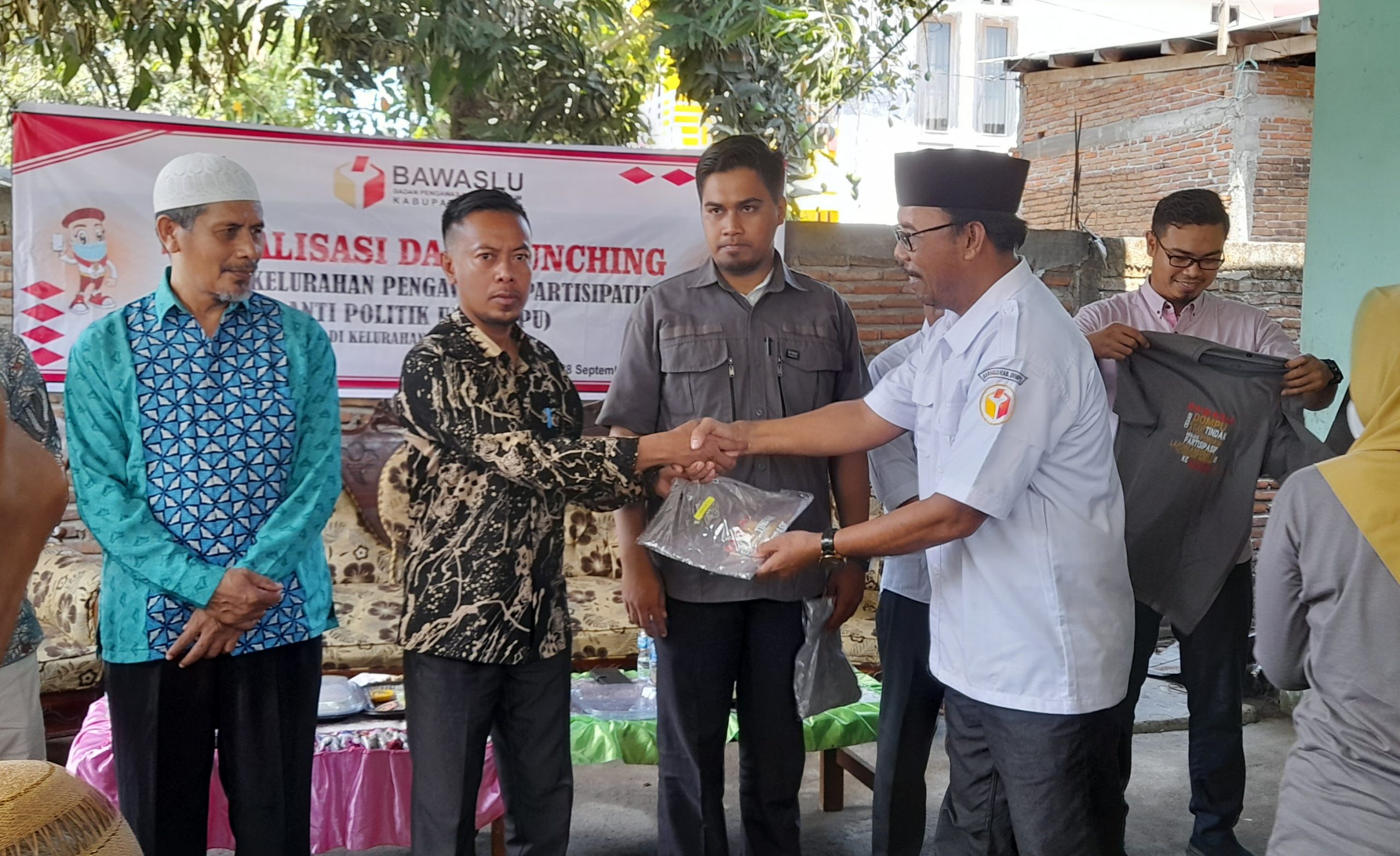 Acara sosialisasi pengawasan partisipatif dan launching Kelurahan Anti Poliik uang tersebut ditandai dengan penabuhan gendang oleh anggota Bapsata dan penyerahan kaos yang bertulis ‘Awas, Cegah, Tindak dari bawaslu kepada Camat, Lurah, ketua Bapsata, Tokoh Masyarakat dan wartawan. (am)