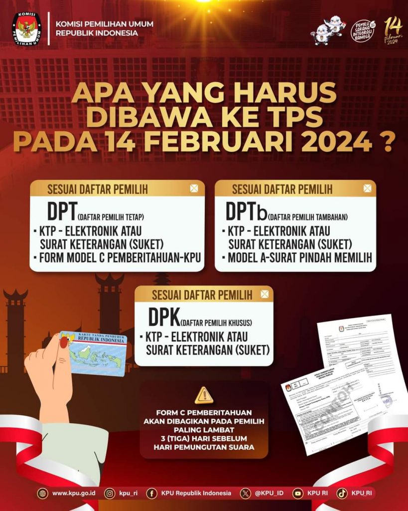 Pemilih Wajib Membawa ini Saat Memberikan Hak Suara di TPS Pada Pemilu 2024