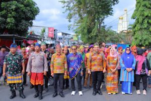 Tiba di Lapangan Karijawa, Bupati Dompu beserta rombongan Forkopimda melakukan tarian Muna Pa’a dengan diiringi lagu Nggahi Rawi Pahu ciptaan Almarhum Israel M. Saleh.