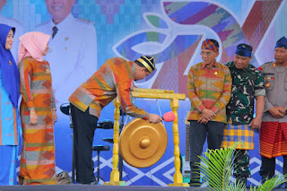 Bupati Dompu, Kader Jaelani melakukan pemukulan gong sebagai pertanda dimulainya event Dompu Expo 2024. Bupati dalam sambutannya, saat ini potensi wisata di Kabupaten Dompu tidak perlu lagi diragukan.